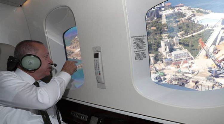 Havadan yapılan denetimler sırasında, Cumhurbaşkanı Erdoğan adadaki son projeleri ve yenilikleri gözlemleyerek hazırlıklar hakkında bilgi aldı. Sosyal medya üzerinden paylaştığı fotoğrafta, “Demokrasi ve Özgürlükler Adası üzerinde incelemelerde bulunduk” şeklinde bir not düştü.